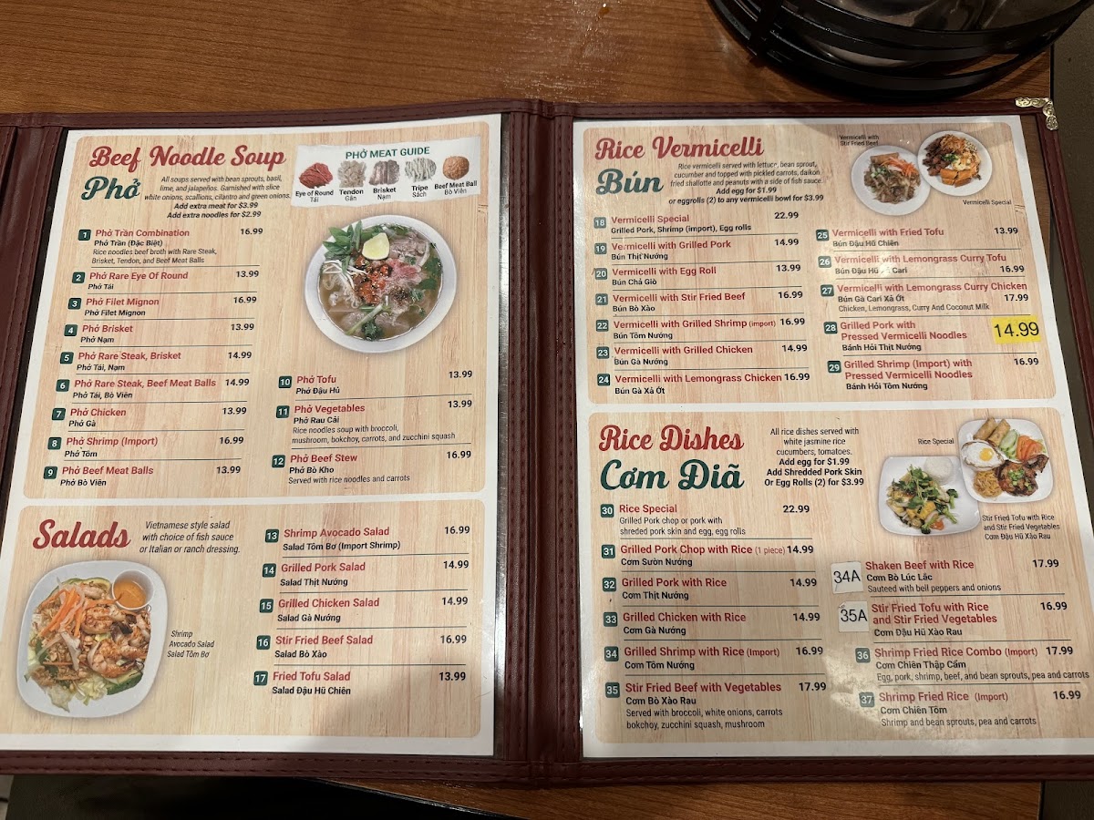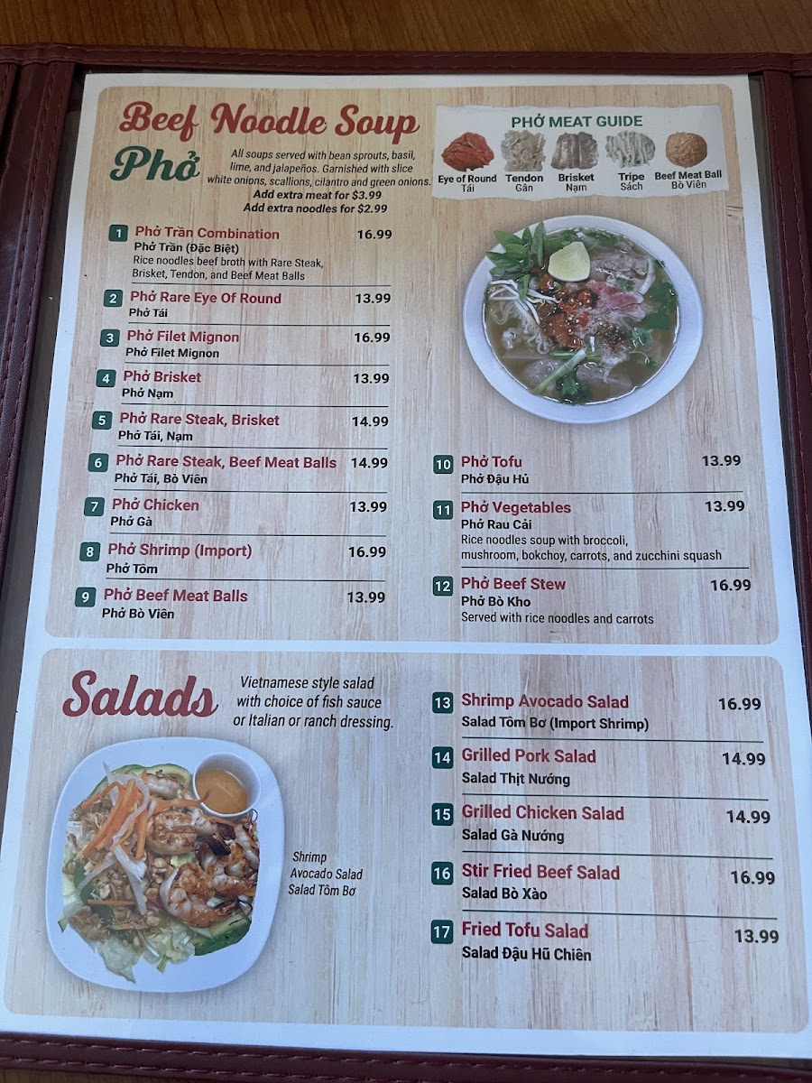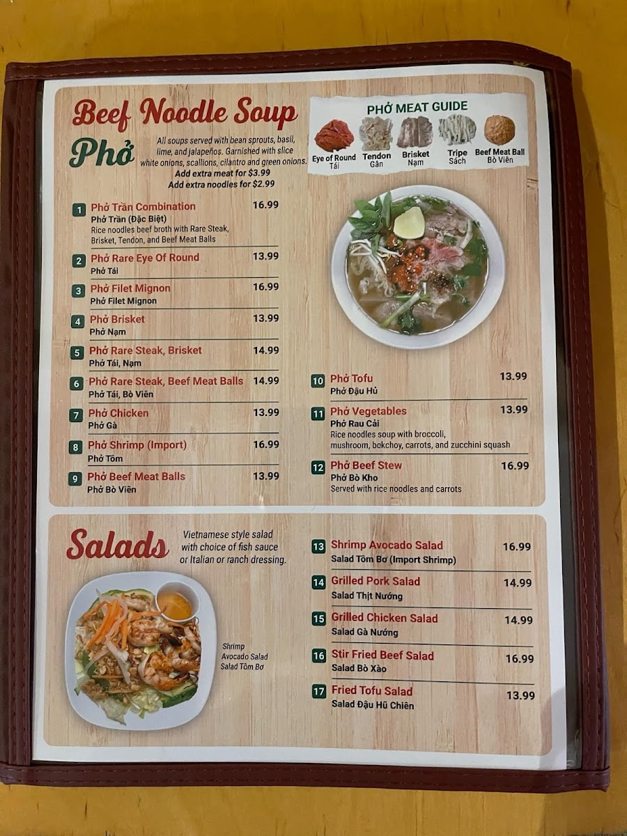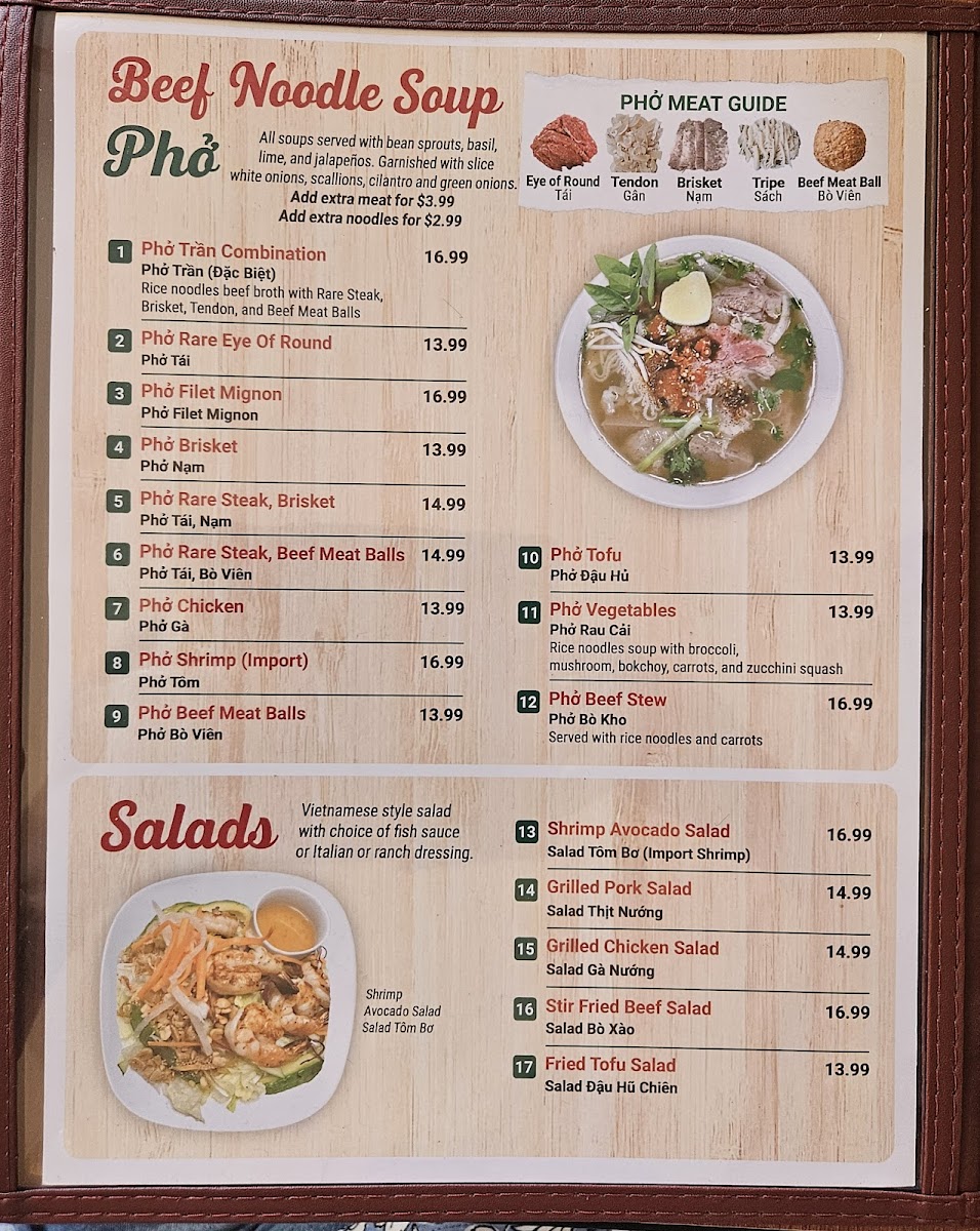 Phở trần (đặc biệt) rice noodles soup with rare steak, brisket, tendon, and beef meat balls